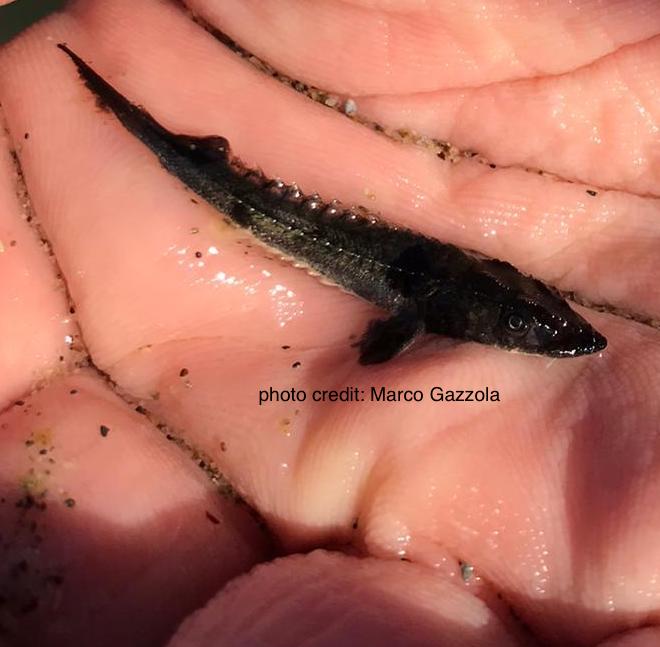 On June 26, an Adriatic sturgeon fingerling was sight, captured, photographed and released by an amateur fisherman in the stretch of the Po river between the Lambro and Trebbia tributaries, upstream of the Isola Serafini dam. Sightings of this type have already been reported in the past in a Po tributary, the Ticino river, but this is the first time in many years that an individual of such a small size has been found in the main stream of the Po. The Adriatic sturgeon generally reproduces in captivity in May-June and the size of the animal is thought to be at least 2 months of life after hatching. Not having been carried out restocking actions with subjects reproduced in captivity during this year, it is possible to suppose that a reproduction occurred in nature, and that this reproduction took place earlier than the usual period of the farmed species. This is not the only observation of sturgeons reproduction in nature, and reports of sturgeon spawning in the Ticino River were also made about a month ago.