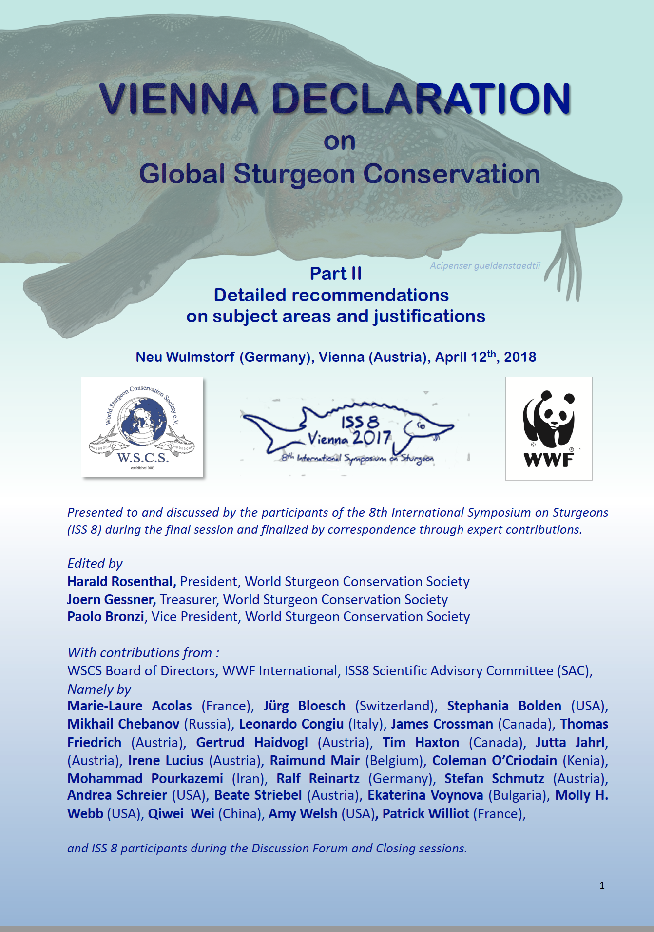 The Society intends to act as an international forum of scientific exchange for all persons interested in pertinent issues on sturgeons while at the same time seeking opportunities for close co-operation at an international level.