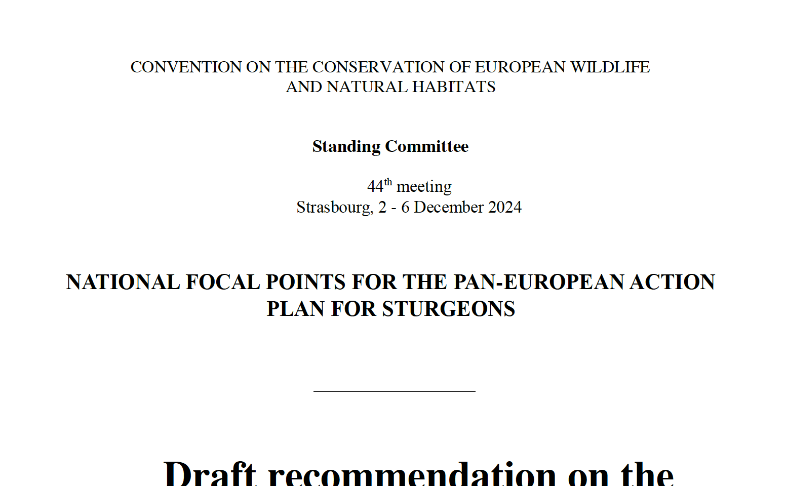 The Standing Committee of the Bern Convention recommended their application to all member states, with the aim of supporting the implementation of the Pan-European Action Plan for the Conservation of Sturgeons(https://rm.coe.int/pan-european-action-plan-for-sturgeons/16808e84f3) and promoting all activities related to their conservation.